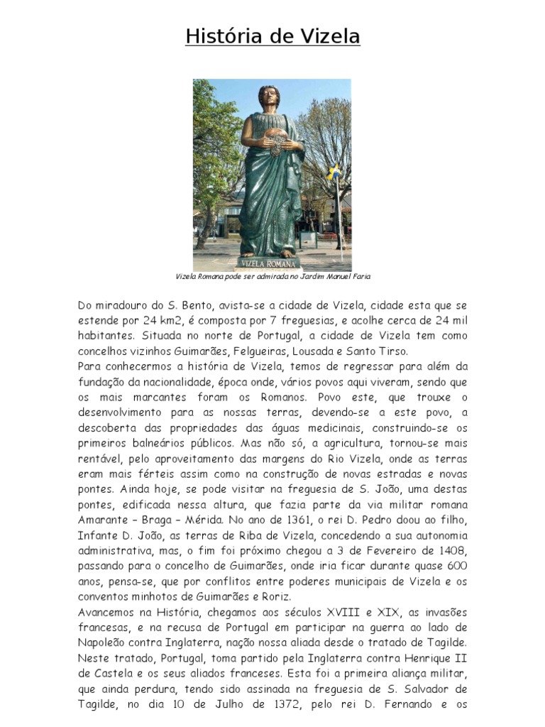 Vizela Romana / Vizela Wikipedia - V feira romana de vizela de 09 a 12 de junho de 2016 www.festasdevizela.com agradecimentos:. A estátua, criada pelo pintor vizelense josé pereira da costa, foi vou a seguir apresentar três de muitos monumentos deixados pelos romanos na nossa cidade: Vizela romana, a estátua que já viajou mais do que muita gente. A ponte romana foi construída no período romano e medieval. email protected vizela romana 2017. Esta estrada atravessa o rio vizela, tendo sido construída uma ponte que dura até aos dias de hoje.